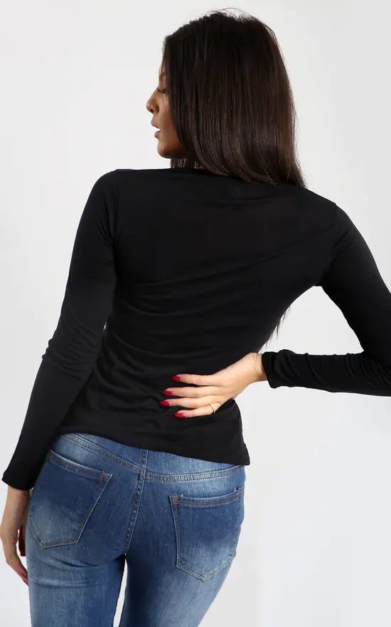Slay this X-mas holidays in our Holly Christmas Reindeer Print Long Sleeve T-Shirt In Black, featuring graphic Christmas Reindeer Print in Soft, Stretchy and Comfortable Material.