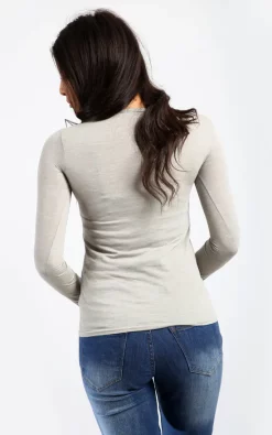 Jessica Christmas Long Sleeve Tshirt In Grey ! Slay the ho-ho-holidays this season in our Christmas T Shirt Dress featuring Snowman And Reindeer print and long sleeves