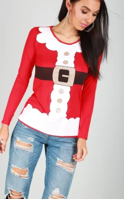 Get ready for this Christmas and Slay the ho-ho-holidays this season in our Christmas Santa Costume Long Sleeve Top In Red, featuring a soft jersey material.