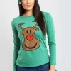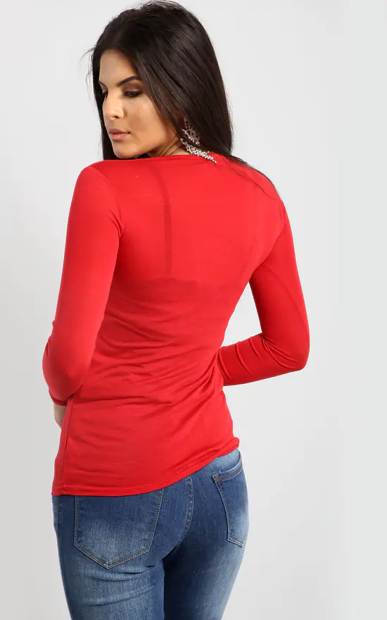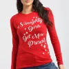 Get ready to dazzle this Christmas season in our Ruby Christmas Snowflake Santa Print Long Sleeve T-Shirt in Red, featuring a soft & comfortable jersey material.