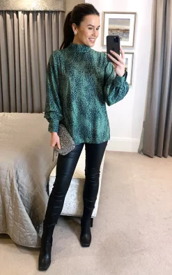 This gorgeous top is the perfect match for any outfit. Animal print blouse with high neck and relaxed fit.
