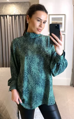 This gorgeous top is the perfect match for any outfit. Animal print blouse with high neck and relaxed fit.