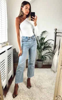 This One Shoulder Ribbed Top in White is a great basic wardrobe staple. Simple and effortless, it’s ideal with skinny jeans and flats for a stylish weekend look or add heels to dress it up.