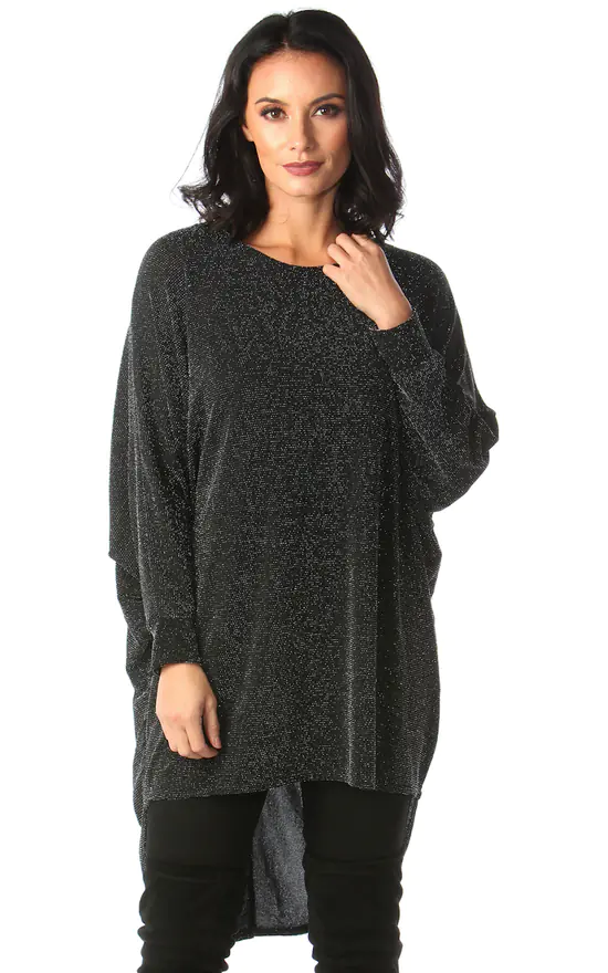 Get set to sparkle in the beautiful Black Sparkle Batwing Top!