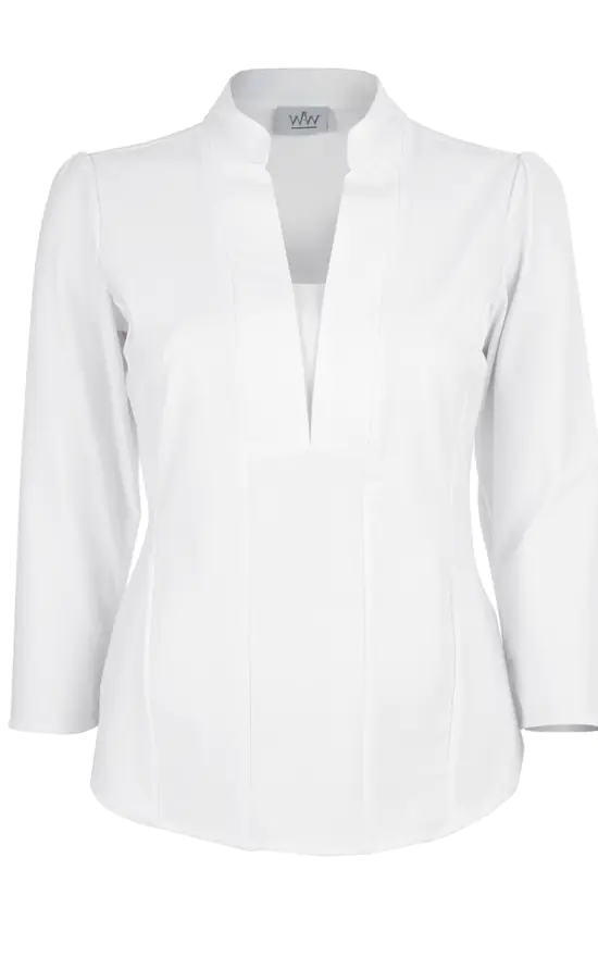 The most comfortable shirt you will ever own โ smart enough to wear under a jacket and comfortable with no buttons thus avoiding the worry of gapping. Lovely fabric with fine herringbone detail which can be left to dry without the need to iron โ suitable for busy ladies or those who travel a lot. The design is such that even for ladies with a larger bust it will have a lovely streamlined fit below jackets and coats. If your preference is a slightly looser fit please take a size up.