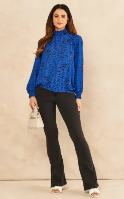 Wholesale 🧨 Jenerique High Neck Long Sleeve Oversized Top In Sax Print ✔️