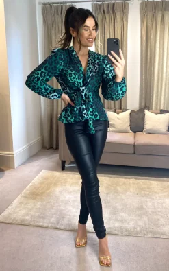 Best Pirce 😍 Jenerique Wrap Over Long Sleeve Top/Blouse In Green Leopard Print 🔔