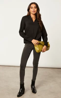 Best reviews of 🎁 VM Long Sleeve V Neck Satin Blouse In Black 💯