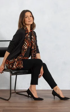 Best reviews of 🌟 Klass Plain And Animal Print Dip Hem Knitted Tunic Top Black/Orange ⌛