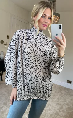 Best deal ✨ KURT MULLER High Frill Neck Leopard Top In Cream ❤️