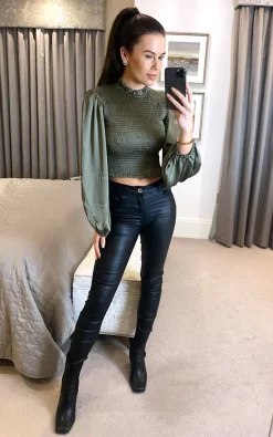 Best deal 🌟 URBAN TOUCH High Neck Bodycon Long Sleeve Top Khaki 🔔
